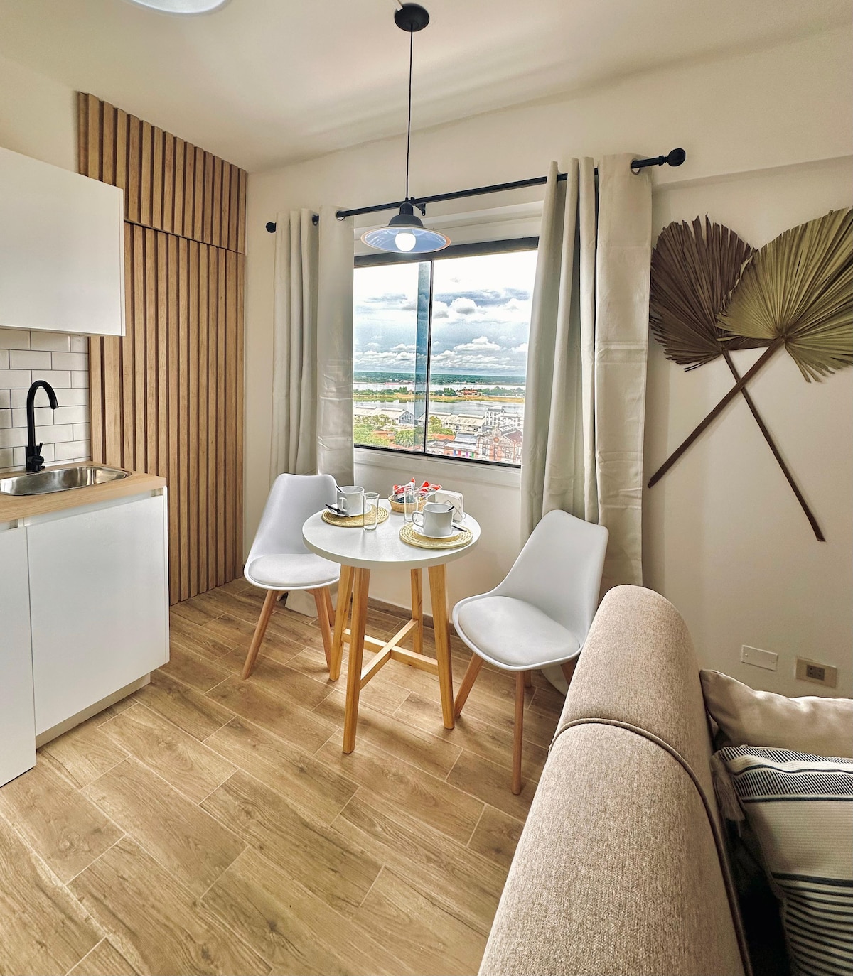 Welcome to your place in Asuncion. The apartment has a beautiful view from the balcony, to the city, the Paraguay river and the prime minister's palace. It has a comfy double bed (160cm, most places have just 140cm), a shower with handheld showerhead (most places have just overhead mounted showers) and a fully equipped cozy kitchen (most places just don't have a welcoming one), with a warm, artsy atmosphere. A good place to relax, spend quality time as couple, work or just explore the city.