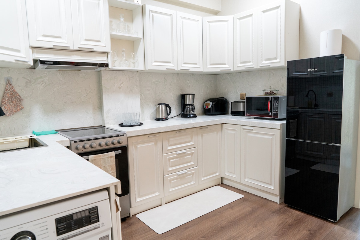 105m2 brand new renovated, very spacious entire condo in at the heart of downtown. ▶ For up to 8 guests ▶ 3 bedrooms ▶ 1 living room with kitchen and dining area ▶ 1.5 bathrooms ▶ Hallway Everything is new and it is just 300 meters from the Central Square. SAFETY. Our area has its own security guards. This special place is close to everything, making it easy to plan your visit. PS: NOT FOR BDAY OR ANY PARTIES. IF BOOKED FOR THOSE PURPOSES, WE WOULD HAVE CANCEL AND PAY NO REIMBURSEMENTS.