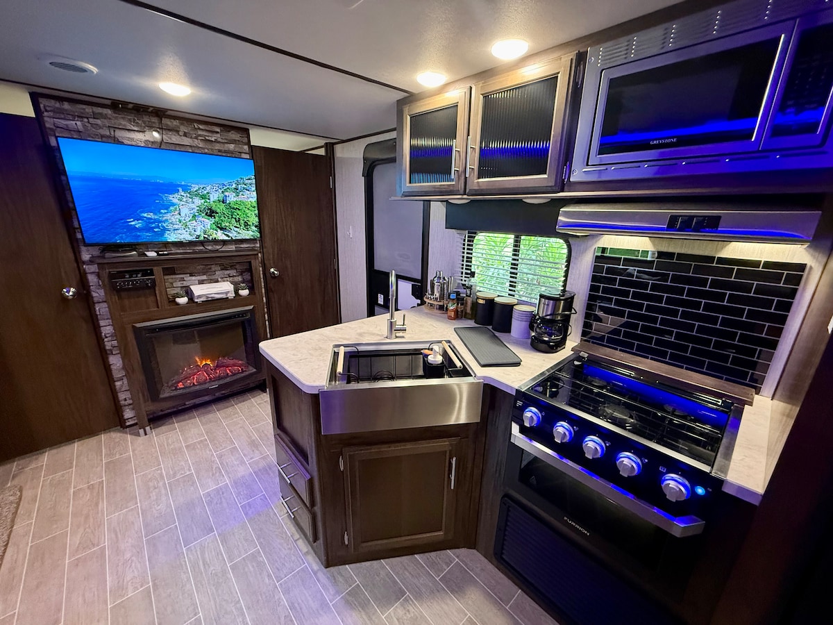 Öz tropik vahələrinizə qaçın! Puerto Vallartanın çimərliklərindən, marinasından, gecə həyatından, qolf və dünya səviyyəli yemək yerlərindən bir neçə dəqiqəlik məsafədə müasir, tam təchiz olunmuş lüks istirahət avtomobilində dincəlin. Rahatlıq və macəra axtaran ailələr, cütlüklər və ya rəqəmsal köçərilər üçün mükəmməldir. Hovuz, su sürüşkəni və yamyaşıl mənzərəli qapalı kurortda yerləşən bu xüsusi kemper açıq havada yaşamaq təcrübəsi ilə evin bütün rahatlıqlarını təklif edir.
