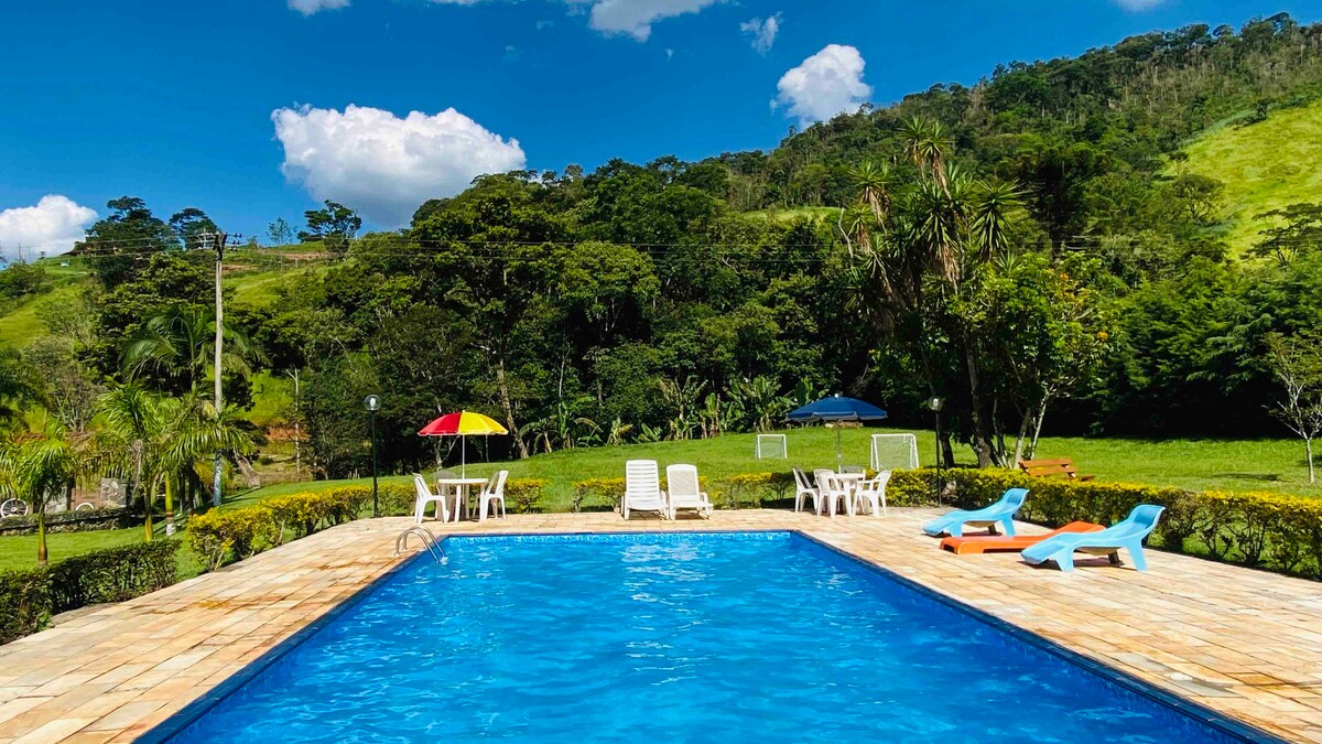 Serra da Mantikirada bənd tərəfindən bu ferma evinin təbii möcüzələrindən zövq alın! Sakit məkan, qonşu yoxdur, dostlar, ailələr və şənliklər üçün idealdır. Üzgüçülük hovuzu, tam mətbəxi, yeraltı şərab zavodu, hovuz masası olan oyun otağı, foşbol, pinq-ponq olan böyük və rahat ev. Voleybol şəbəkəsi, barbekü, odun sobası, pizza sobası, buxarı və açıq buxarı. Və çoxlu heyvan! Gəlin və zövq alın! San-Paulu yaxınlığında təbiət və valehedici mənzərələr!