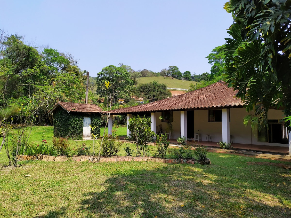 Relaxe com toda a família nesta acomodação tranquila. Uma casa dentro de uma fazenda localizada em um vale,onde funciona um Haras. Natureza exuberante com vários lagos. Ideal para família que deseja sair dos centros urbanos e agitação e ter contato com natureza e animais. Não realizamos passeios a cavalo no momento. É um haras de criação apenas. Ideal carro traçado 4x4, são 4 km de estrada de terra com pequeno trecho ingrime. Acesso pela Rodovia Dom Pedro I, é um lugar rústico.