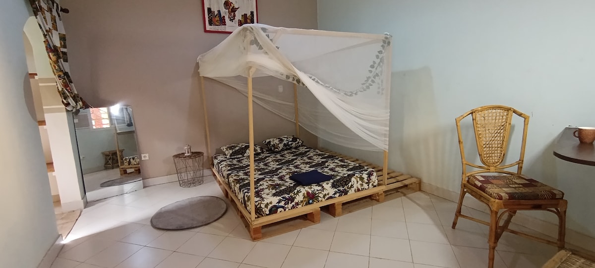 AIBD hava limanından 10 dəqiqəlik məsafədə yerləşən yeni studiya. Seneqalda hazırlanmış etnik toxunuşu ilə seçilən dekorasiyanın sadəliyi ilə onun geniş tərəfi sizi valeh edəcək. Qonaqlama yeri jendarmeriyaya və bir neçə dükana yaxın tam inkişafda sakit və təhlükəsiz ərazidədir. Əlavə məlumat üçün mənimlə əlaqə saxlamaqdan çəkinməyin.