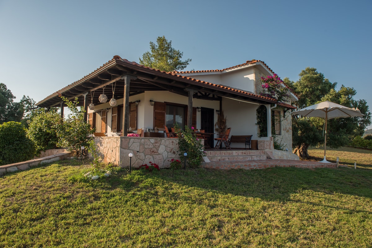 Barbekü ilə seaview,parkinq və həyəti olan Yunan Evi