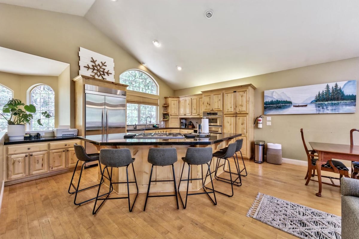 Müasir Dağ Tətilləri tərəfindən Echo View Chalet-ə xoş gəlmisiniz. Meşəni sıralayan evimiz HEYRƏTAMİZ mənzərələrə malikdir və bütün il boyu mükəmməl Tahoe ev bazası olan böyük boulderlərin arxasında unikal şəkildə sıxışdırılıb. Meşəyə + Maunt Tallaca baxan arxa göyərtədə dostlarınız və ailənizlə vaxt keçirin, həyətdə nəhəng qar adamı qurun və şirin mişar gölməçəsinə doğru yürüyüş edin. Ailələr üçün qurun. Körpə qapılarımız, paket n oyunlarımız, hündür kreslo + çoxlu uşaq oyuncaqlarımız və kitablarımız sizin üçün hazırdır. İtlər təsdiqləndi.