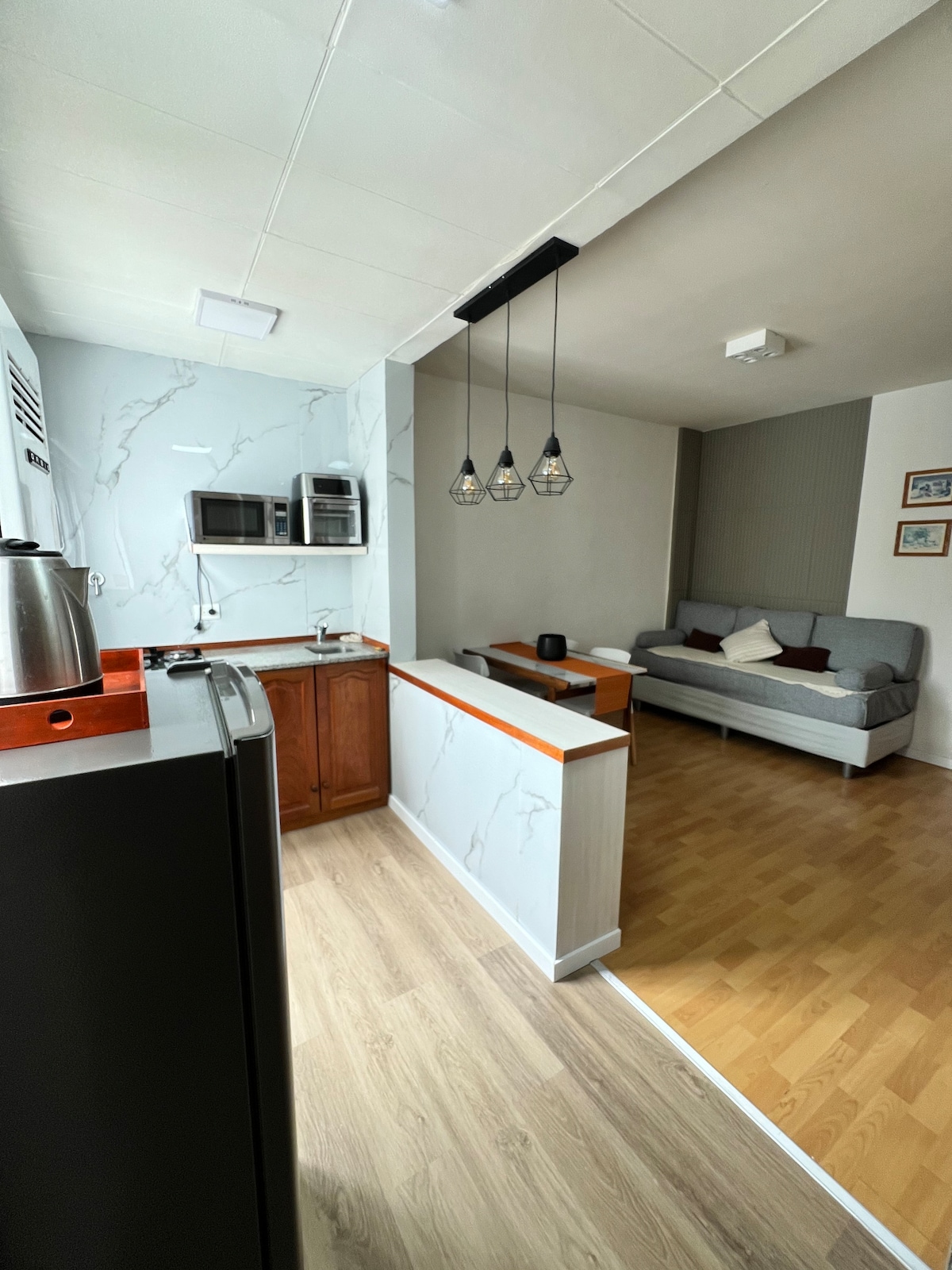 Disfrutá de una experiencia con estilo en este departamento céntrico. Hermosas vistas hacen único este alojamiento. Has de tu vida una experiencia única desayunando frente al mar y el bosque. Contas con una amplia cocina equipada un living comedor cómodo y una habitación con cama de 2 x 1,8. Detrás del sofá encontrarás un colchón para una 3 ra persona.
