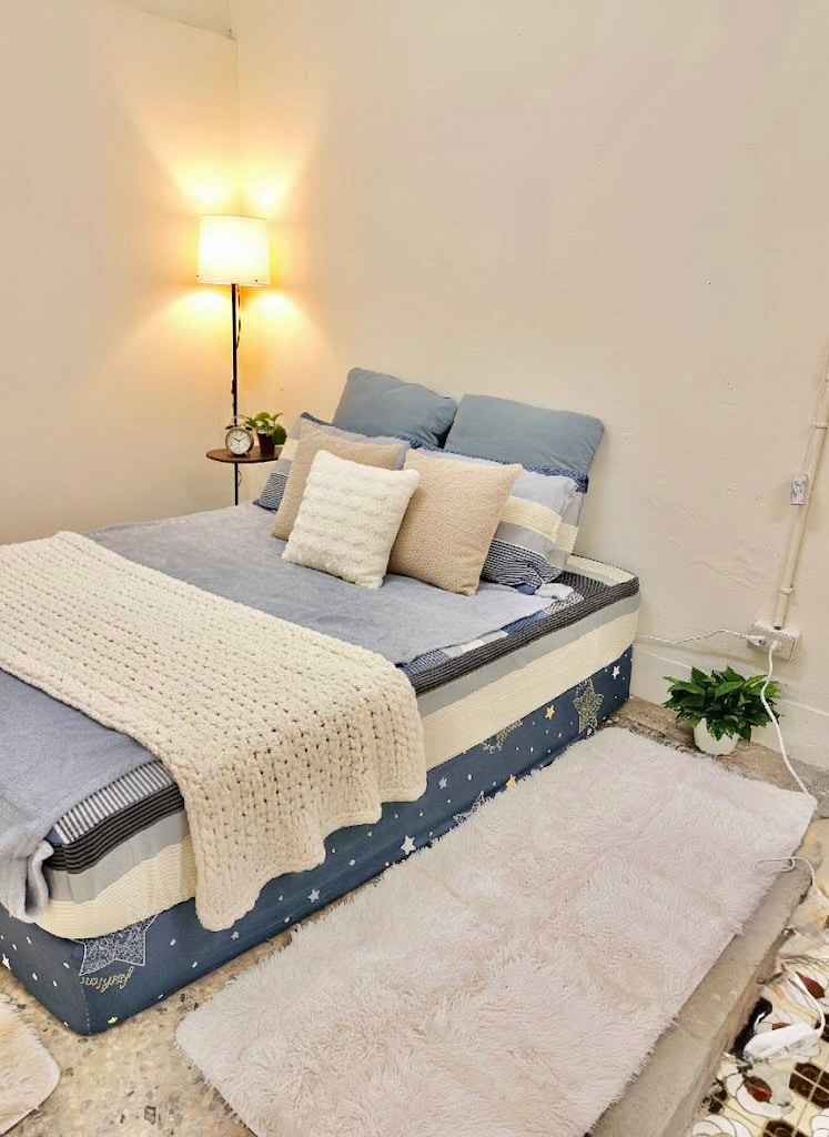 [奶油在奶茶裡] 奶油風格侘寂風,老宅改建的小民宿,住的開心 🧁用奶油風包圍你 B房小小溫馨雅房,還可放其他東西,雖然可愛但是也夠好好睡著了 房間水冷風扇 ,客人好評中 浴室在廚房旁邊,價格實惠 客人來都說覺得真的融化在奶油中,睡得很好 老宅改建,用60分的期待來住會獲得85分的開心 完美主義者不適,適合感恩優惠價格又簡便輕旅的你 🧁奶油色、能降低大腦的警覺度,讓人放鬆、安心 減少焦慮、幫助情緒穩定,每天都住在溫柔中 「侘寂(Wabi-Sabi)」的核心是:不完美也是一種美 - 表面上的粗糙、時間留下的痕跡,都在提醒我們人生不需要完美 心靈轉化:從焦慮完美 → 接納不完美 - 讓眼睛休息,也讓心有空間容納自己是一種心靈練習 🚝 四分鐘到昆陽捷運站 捷運站旁有很多食物、商家 ➡︎ 捷運往右五分信義區 全台灣第一名的都市是台北,台北第一名的區域是信義區好逛 ➡︎ 捷運往左五分南港站 最新開幕的LaLaport 百貨好玩 🧁睡在奶油中 奶油風廚房 刀具 浴室 可愛的旅店 陪你 優惠價格中,記得帶你的毛巾跟水喔~ 租用毛巾低價$100 (US$3.5)租用
