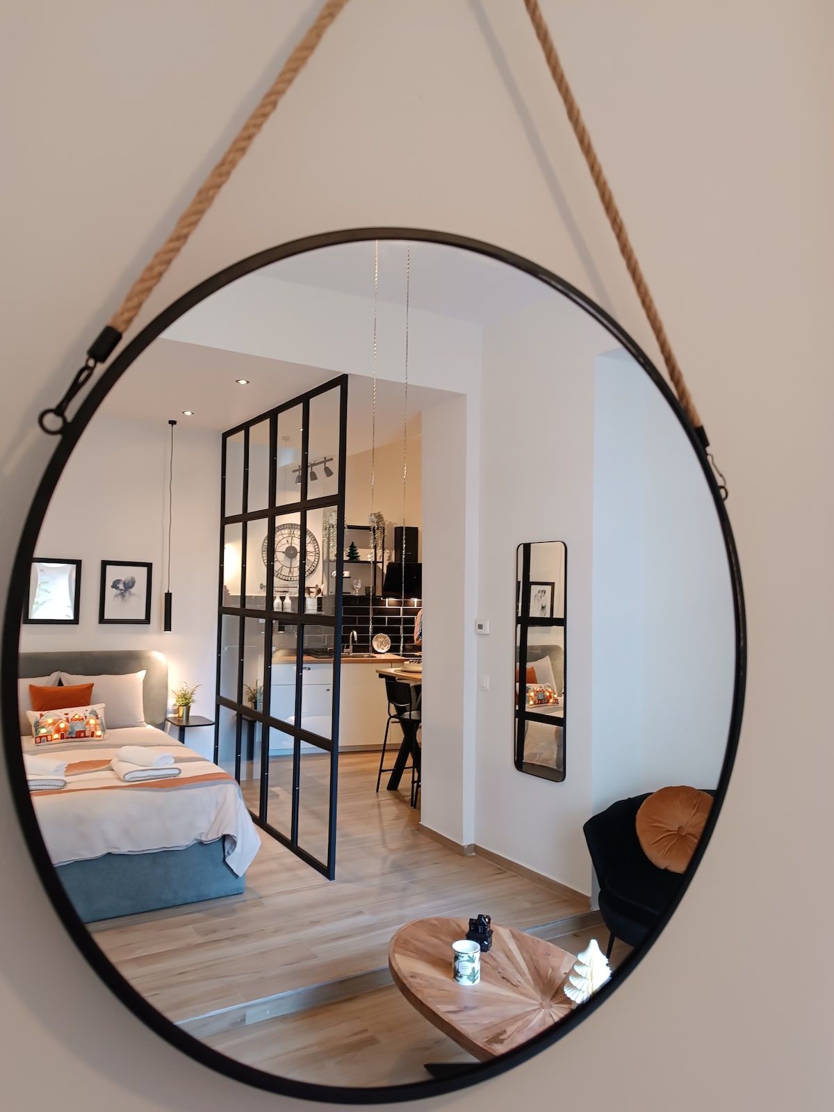 Experience modern living in our newly renovated 35 sqm studio in Thessaloniki, completed in 2024. This gem next to the train station offers style, comfort, and convenience. Inside, enjoy a Nespresso machine, free Netflix, stable Internet, a small balcony, and a luxurious queen bed. Fully equipped kitchen, washing/drying machine and gas heating ensure your needs are met. 3 minutes from the train and subway station and 4 from One Salonica Mall, it's perfect for travellers and professionals alike!