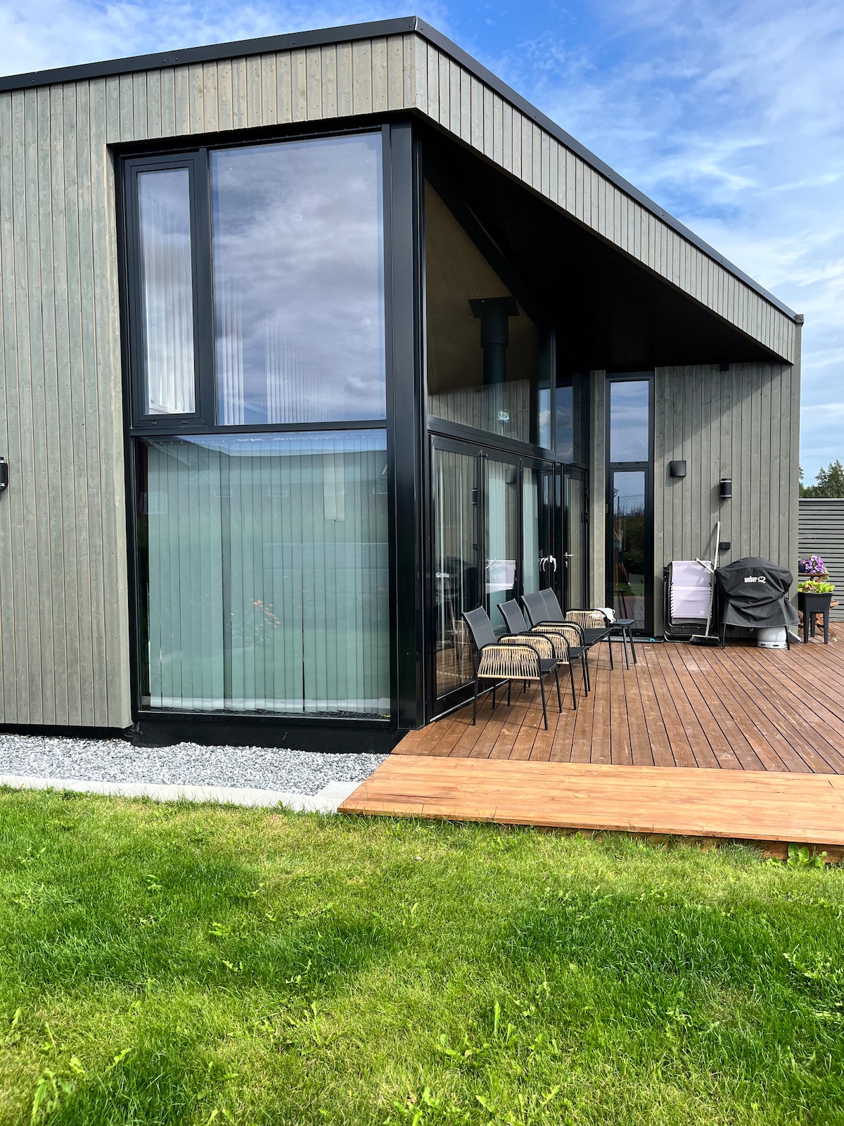 Suyun bir neçə metrliyində sevimli təbii ərazidə böyük və böyük ev, öz jetty, böyük açıq hava sahəsi və suyun heyrətamiz mənzərəsi olan eyvan. Evdə həm yay, həm də qış aylarında gözəl qonaqlama üçün lazım olan hər şey var. Müasir və yaxşı təchiz olunmuş mətbəx və duşu olan vanna otağı. Televizor, oyunlar, kitablar, üç yataq otağı və böyük divan çarpayısı olan iki qonaq otağı. Ev sakit günlər, ailəvi rahat və ya rahat yaşayış üçün əlverişlidir və mağazalardan cəmi 15 dəqiqə, Oslodan 1 saat, Qardermoen hava limanı və İsveçdən cəmi 15 dəqiqəlik məsafədədir.