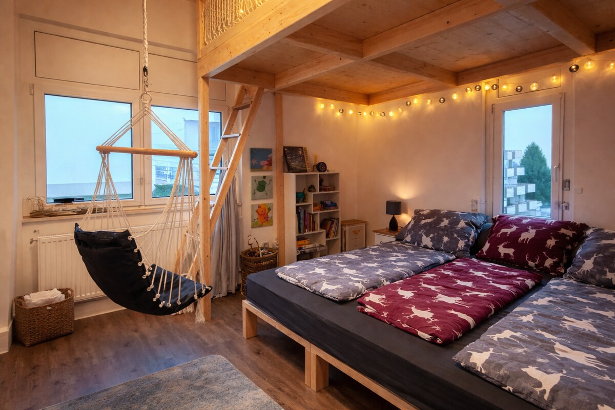 Passau və Bavariya Meşəsi və Dunay İlz velosiped yolu arasında yerləşən yeni mənzilimizi sizə təqdim edəcəyik. Təfərrüatlara çox sevgi ilə kondisionerli çardaqda istirahət yeri yaratdıq. Passaunun gözəl Barokko şəhərinə səfər, uzun gəzintilər və ya ailə ilə rahat fasilə olmasından asılı olmayaraq, özünüzü rahat hiss edəcəksiniz. Tezliklə sizi gözləyirik! PS: Sadəcə pulsuz əlavə çarpayı və ya beşik istəyin!