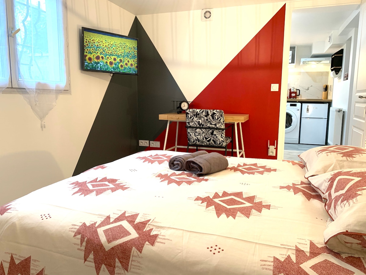 Magnifique studette cozy avec vue sur grand jardin. Le logement est très bien situé à 5min à pied de la gare, à 25min de Paris. Supermarchés, boulangeries et commerces à 3min à pied. Le logement est équipé d'un grand canapé-lit pour deux personnes, une salle de bain avec douche et toilettes, un bureau, des rangements, armoire. La wifi est comprise. un coin cuisine avec frigo congélateur un micro onde une table de travail avec deux chaises.