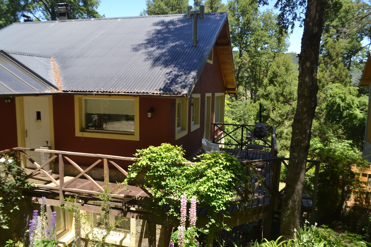 Encantador diseño en piedra, madera clara y amplios ventanales. Rodeada de árboles autóctonos. Está ubicada a 1 km del centro de la ciudad, a 16km del aeropuerto de Chapelco y a 16 Km del centro de Ski Chapelco . Equipada: Parrilla, lavaplatos, lavarropas, microondas, 3 televisores con Directv, wi-fi, teléfono con llamadas locales gratuitas, 2 baños completos. Estacionamiento, cálido jardín y servicio de limpieza. Se puede solicitar mayor información, ya sea en español, inglés o italiano.