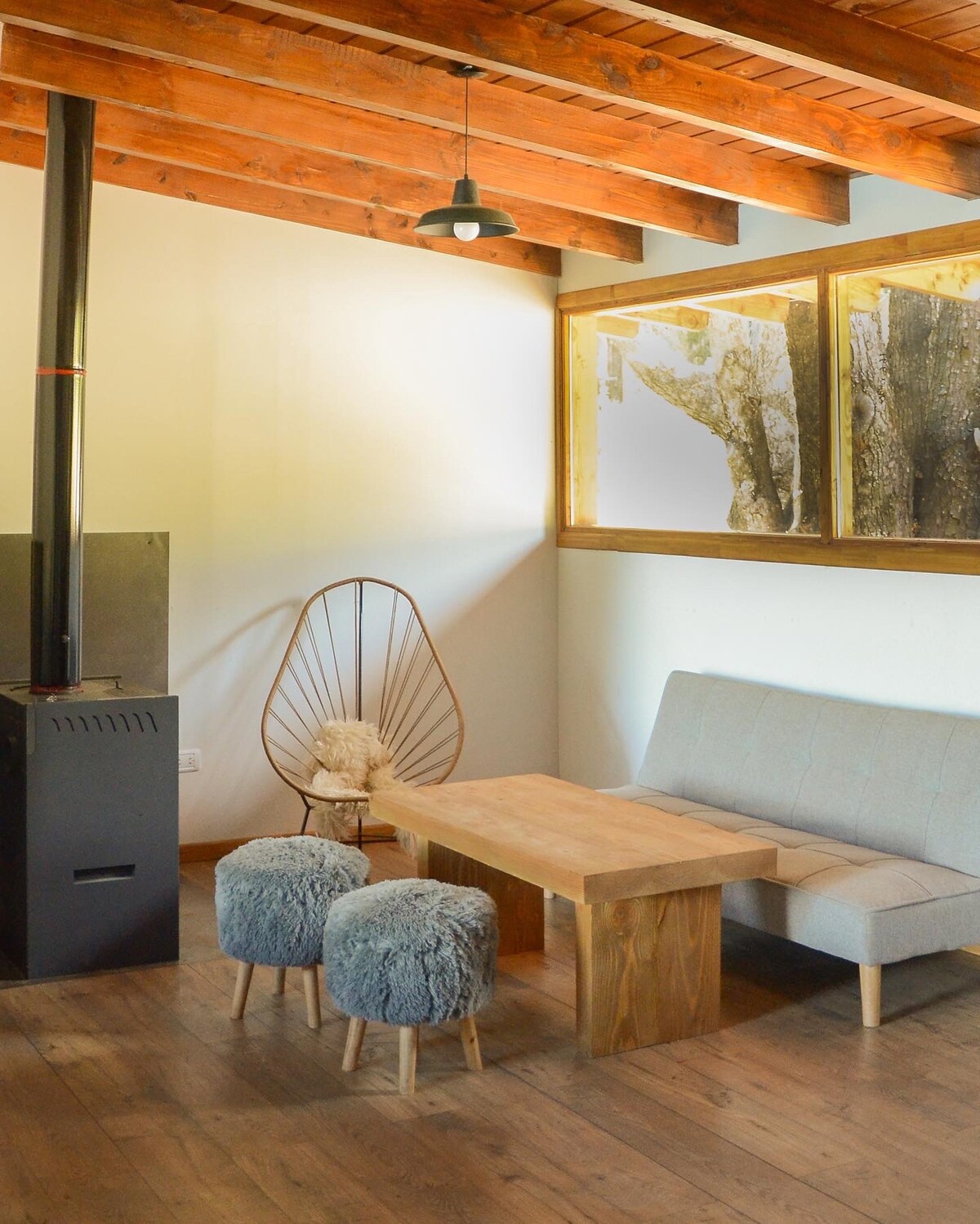 Nuestro lodge, ubicado a orillas del río Alumine, te ofrece paz y tranquilidad única donde encontraras una conexion con la naturaleza inigualable. Nuestro jardin te invita a disfrutar de los atardeceres mas bellos de la Cordillera de los Andes, como tambien una inmersion de armonia y desconexion con lo rutinario. Nuestro living con sus amplios y majestuosos sillones, te invitan a disfrutar de nuestro calido hogar con vista panoramica al jardin y el rio.