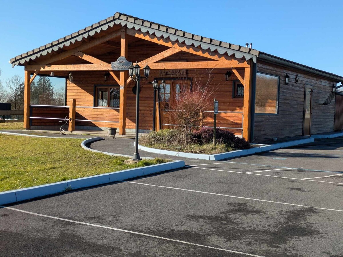 Venez profiter cet automne des magnifiques ballades en foret et du feu à bois ! Chalet N°6 Ce chalet paisible (44m²) offre un séjour détente pour toute la famille. En lisière de foret, parcours santé et chemins de randonnée, proche d'étangs, accès à la piscine ( à partir du 6 avril jusqu'au 1er novembre 2025) divers jeux pour enfants. Snack et restaurant en haute saison. Nouveau : Nous vous proposons également en location le Chalet numéro 3 (voir annonce Ravissant chalet 4 personnes) Laurent