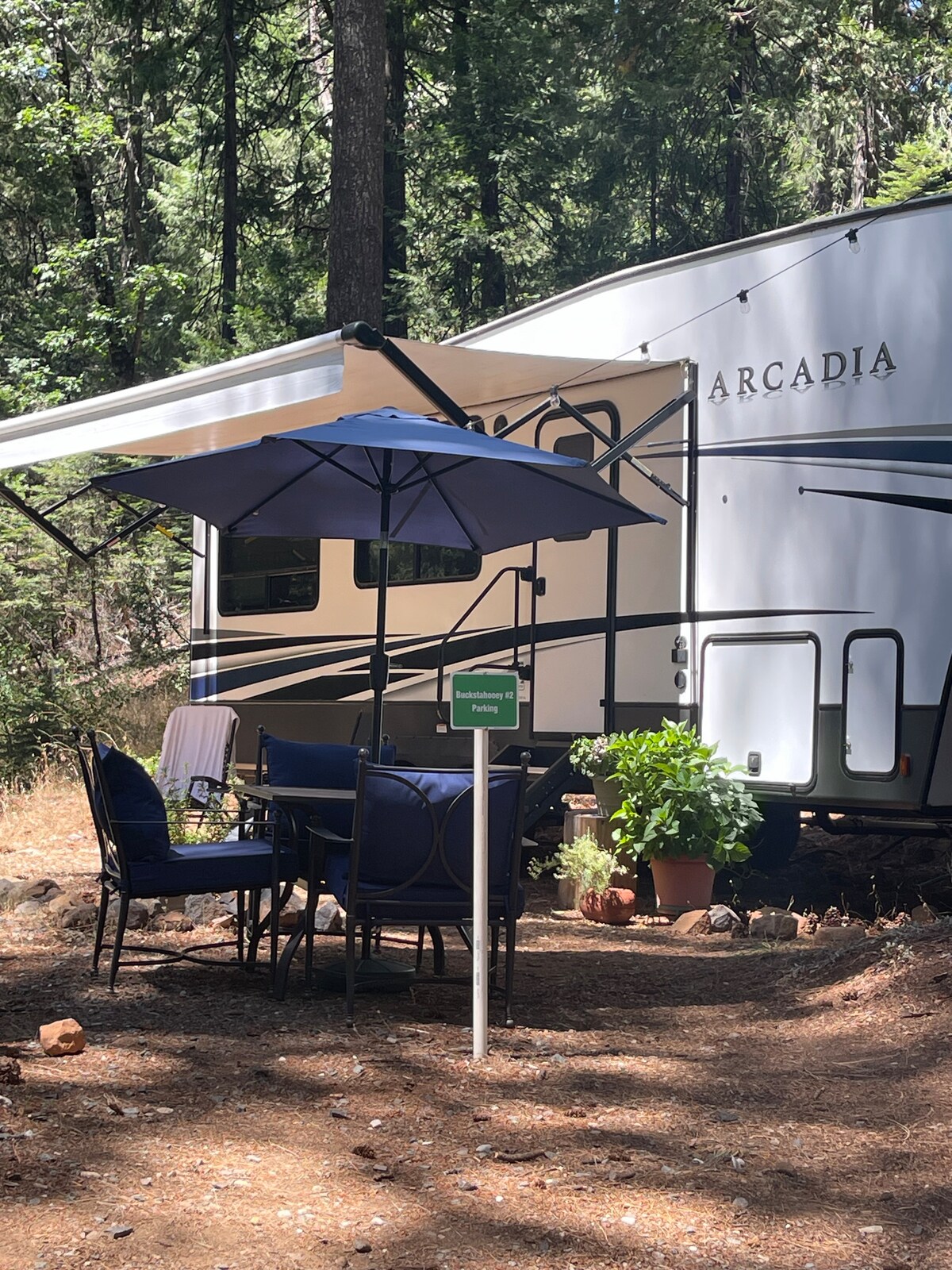 Təbiət qoynunda yerləşən bu romantik məkanın gözəl mühitindən zövq alın. 2021-ci il 32 fut uzunluğunda Arkadiya Səyahət Treyleri əsas evdən uzaqda yerləşən meşədə qurulub.