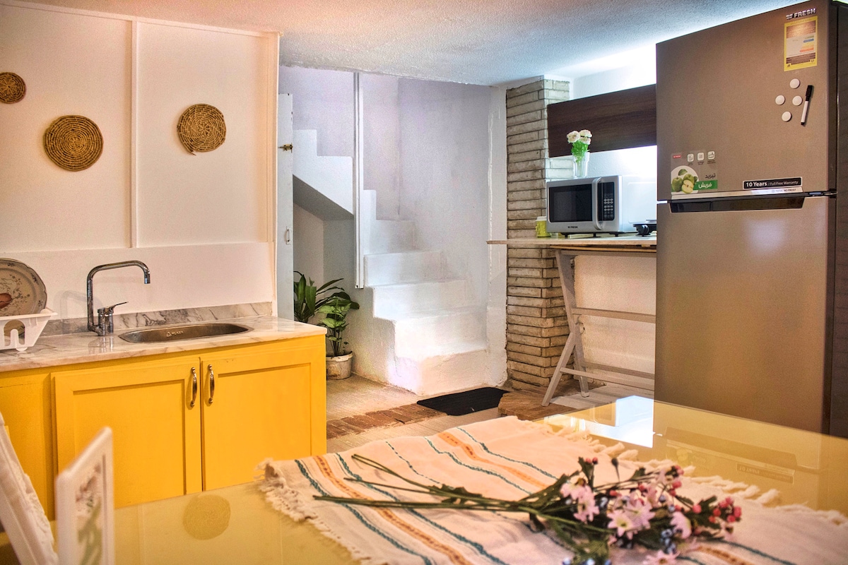 Peaceful and cheerful studio located in a stylish villa in a gated residential compound in New Cairo with plenty of amenities and things to do a few minutes away. You’ll get your own luxurious bathroom and kitchenette fully equipped with all the necessities. The villa has a private garden and pool you can freely use. There is also a private entrance to the studio so you can come in and out freely. You’ll feel totally free and at home.