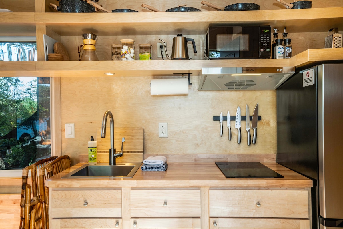 Our beloved “piece of heaven on earth” is a cabin-style tiny home filled with books—perfect for writers or a relaxing beach getaway. Perched on a gentle incline, the Writer’s Retreat feels private and tucked away among the trees. Just minutes’ drive from beaches and a short stroll to the charming center of Wellfleet. Unwind at our on-site SeaRose Spa, w/ a hot tub, saunas, & massage therapy (special guest rates) — part of our BnB property, which also includes two guest suites in the main house.