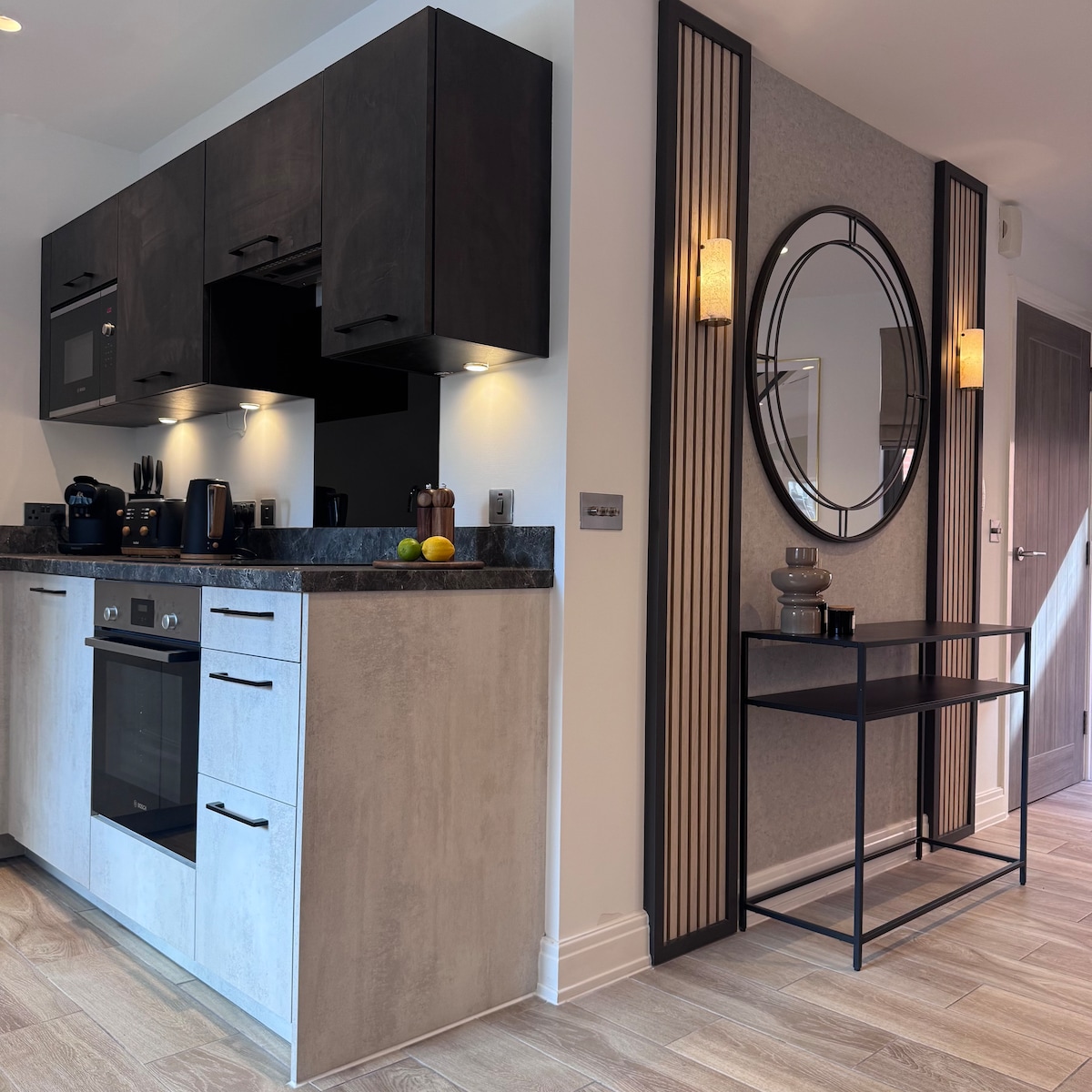 This 5★ Executive Suite has everything you need to feel completely at home during your stay. Thoughtfully designed with elevated modern finishes and elegant furnishings, the space offers a peaceful sanctuary in the heart of the city. Large windows and carefully curated interiors create a calm and welcoming atmosphere, perfect for unwinding after a busy day exploring Manchester or working nearby.