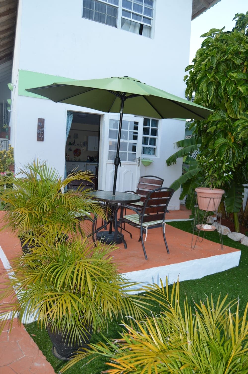 Feel at home in this spacious, private & complete FULLY air conditioned garden apartment with private balcony & SHARED pool. UTILITIES INCLUDED! Located in gated neighbourhood near Spanish water, 8 mins to Jan Thiel Beach & 15 mins to Mambo & Tugboat Beaches. Near many restaurants, grocery stores, excursions & food trucks. *The owners live in the villa above the apartment with our 2 large dogs. The dogs don't have access to the the apartment, but they do have free roam by the pool*