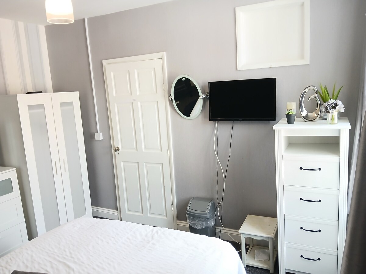Ayrıca girişi olan ayrıca qonaq evi. Geniş hamam otağı olan iki nəfərlik yataq otağı. Tam işlək iş sahəsi. Televizor(Netflix,Amazon prime, Disney+). Çox sürətli Wi-Fi. Qlenfild xəstəxanasından piyada 5 dəqiqəlik məsafə. Lester Şəhər Mərkəzindən 8 dəqiqəlik məsafədə. King Power Stadionundan 15 dəqiqəlik məsafədə. Tam mətbəx yoxdur (ocaq yoxdur, lakin mikrodalğalı soba, toster, çaydan və mini-soyuducu təmin edilir). Əmlak daha böyük əmlakın bir hissəsidir və öz xüsusi girişi olan birinci mərtəbədə yerləşir. Lift yoxdur.