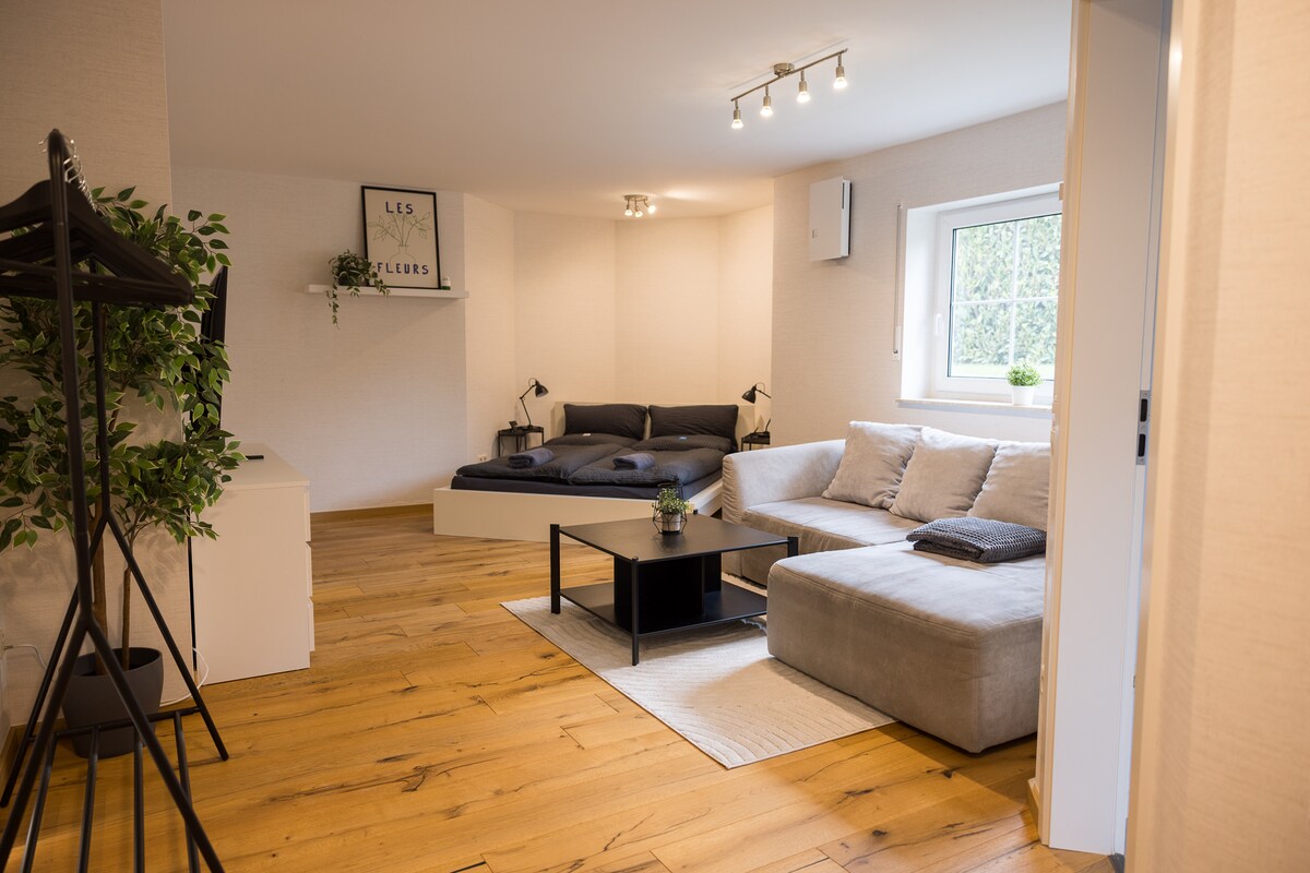 1 room with for 2 people,couch,small fully equipped kitchen,bathroom with window. The apartment has its own entrance in a green,quiet location at the gates of Koblenz, 5minutes to the university;Walks on the edge of the forest possible; Seating area outside; 10 minutes by car to the city of Koblenz,the Rhine Valley or the Moselle Valley;for nature lovers-hikers and guests who like to live quietly in the countryside and are still well connected to all the highlights in the region. (car required)