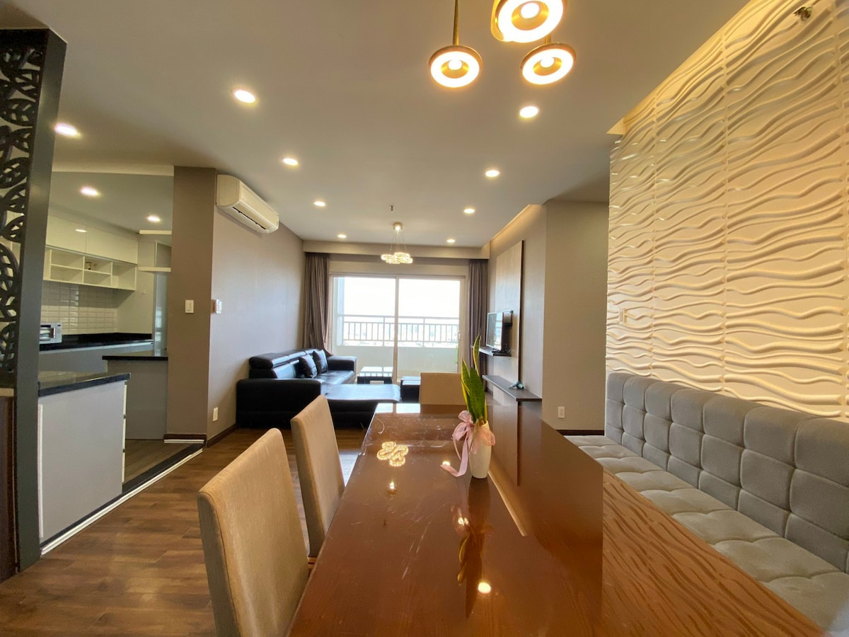 Nha Be District-in mərkəzində rahat yaşıl ab-havası olan unikal 2 otaqlı evimizə xoş gəlmisiniz. Siz bunları tapacaqsınız: * Sakit mənzərəsi olan soyuq balkon * Espresso aparatı, pulsuz içməli su və qab-qacaq ilə tam təchiz olunmuş mətbəx * Yaxşı təchiz olunmuş idman zalı, açıq üzgüçülük hovuzu * Restoranlar, barlar, qəhvə mağazaları, ərzaq mağazaları, yaşıl parklar izinizdədir * RMIT kampusuna 5 dəqiqəlik, Secc/ Crescent ticarət mərkəzinə 10 dəqiqəlik yol. Bu ev rahat istirahət etmək istəyənlər üçün idealdır.