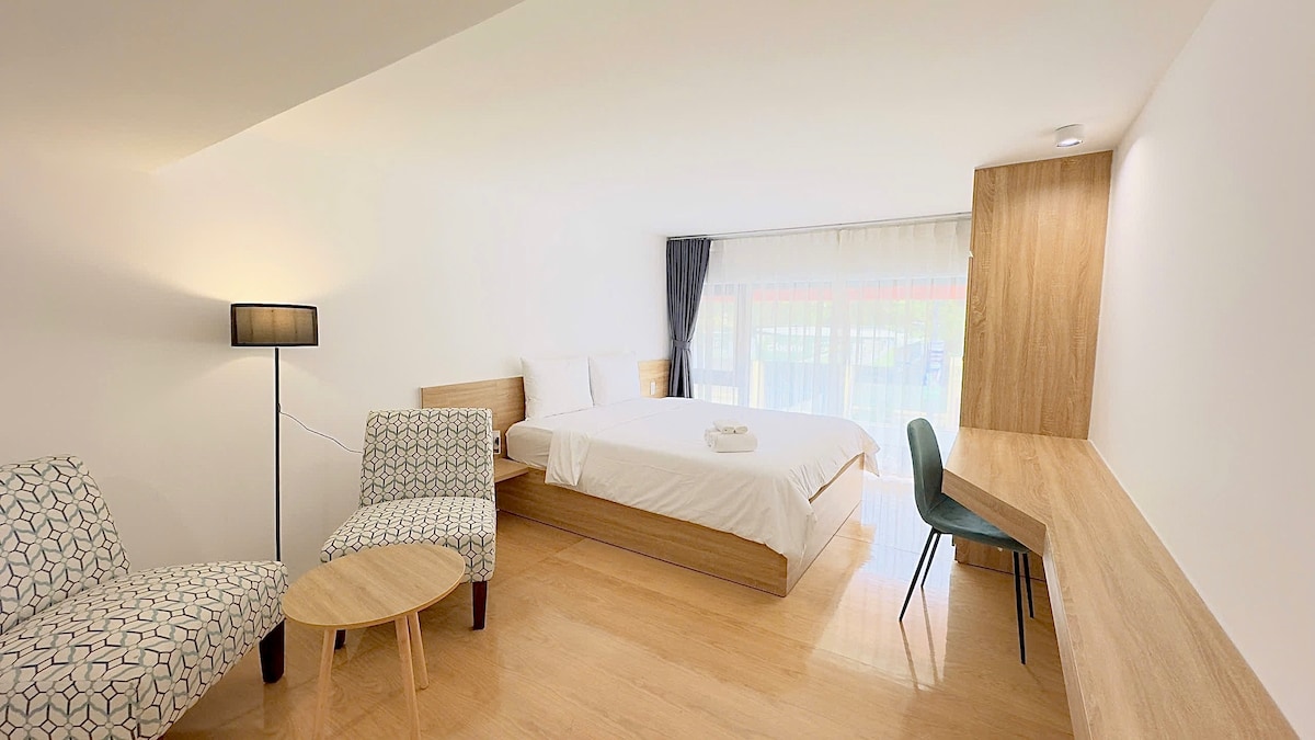 Studiya 🌟mənzili təbii işıq altında qalıb və☀️ daxil olduğunuz an ona açıq və xoş hisslər bəxş🍃 edir. Uzun masadan pəncərənin yanındakı geniş çarpayıya qədər hər bir kiçik küncə qulluq edilir. Kiçik balkon gözəldir və otağı sərin saxlamaq, təmiz külək tutmaq üçün pəncərə geniş açıqdır. Mənzil tam təchiz olunub – sadəcə çamadanınızı gətirin və həyatdan zövq alın 🌷💗🌿