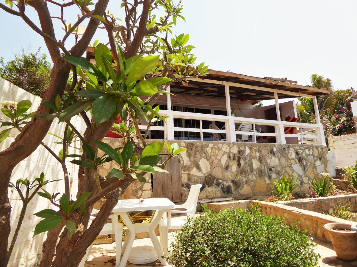 In the heart of Popenguine, old beach cottage, 10 meters from the sea. Main living room without air conditioning, TV lounge with direct access to the terrace facing the ocean, outdoor shower, 2 bedrooms, small kitchen, 1 bathroom (shower, sink, toilet). Included: hot/cold water, power (excluding AC), sheets, towels, services of Jean (caretaker) and Therese: household chores, board (you decide meals and shooping items), wifi, TV Access C + Africa. Possibility transfer, excursions.