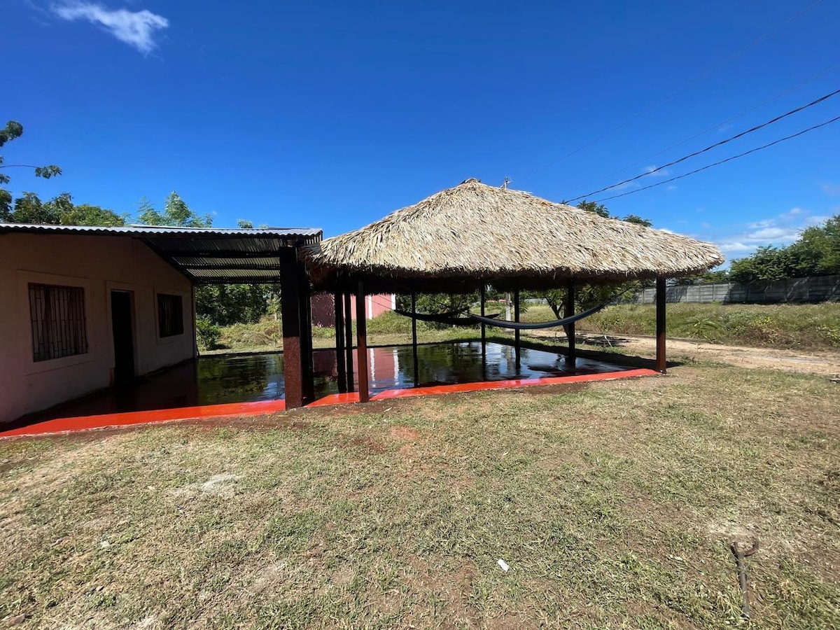 Bonita, amplia y cómoda casa ubicada en residencial "Los Robles", en las afueras de Rivas en un residencial cerrado con control de acceso, muy seguro y con vigilancia las 24x7. La casa tiene salida hacia una amplia área de recreación/deportes, la cual incluye parques, capilla y áreas de esparcimiento.