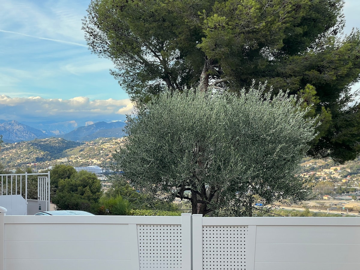 80m² -lik bu mənzil Nitsa şəhərinə baxan Sent Pyer de Féric yaşayış təpəsində yerləşən villada yerləşir. Şəhər mərkəzindən 2,4 km məsafədə tamamilə müstəqil və sakit, kondisionerli, tramvayla əlaqəsi olan şəhər avtobusları xidmət göstərir və pulsuz parkinq imkanı təklif edir. Bura iki yataq otağı, bir hamam otağı, qonaq otağı, yemək otağı və xoş və sakit qonaqlama üçün bütün imkanlarla təchiz edilmiş mətbəx daxildir.