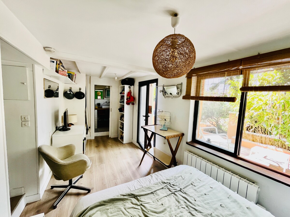 Çimərlikdən 10 dəqiqəlik məsafədə yerləşən qaya və yaşıllıq arasındakı evdə mükəmməl bir əlavə və bütün imkanlar : mağazalar, avtobus və qatar stansiyaları. Bu qonaqlama yerində bütün zəruri rahatlıq var: günəşli terras, sakit yataq otağı, zərif hamam otağı, mətbəx. Uşaq çarpayısı sorğu əsasında. Üstəlik, yataq otağının arxasında sərin bir künc təmin edən terras.