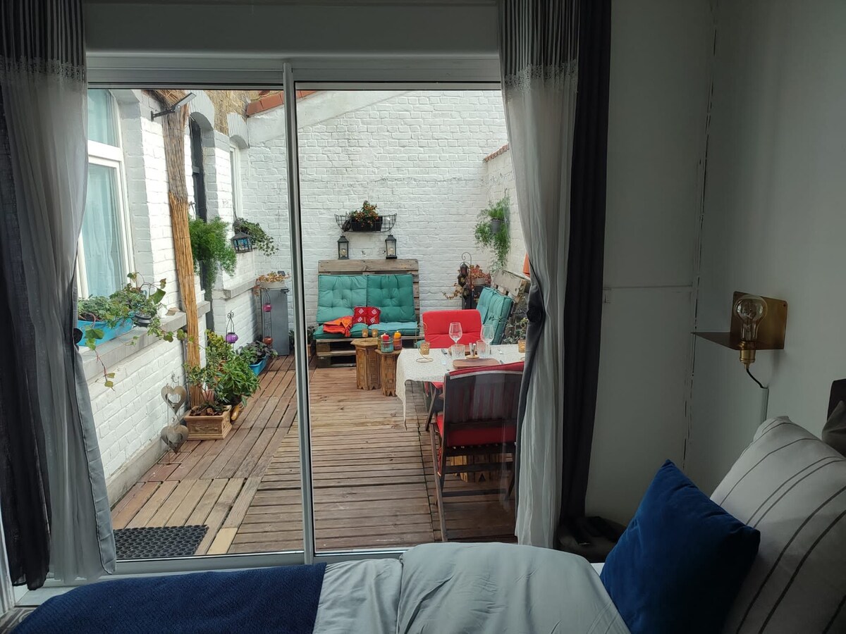 De Sterre - 18-ci əsrə aid bağ evi, əsas evdən uzaqda yerləşir. Brügge şəhərindəki orta əsrlərə aid şəhər evinin tənha vəhşi bağında yerləşir. Oturacaq otağınız var, yataq otağı və hamam otağı yuxarıdadır. Siz yalnız qonaq olacaqsınız, buna görə də çox sayda məxfilik.. 2023-cü ilin yanvar ayının 1-dən Brügge şəhəri gecəlik 3,75 avro şəhər vergisi tələb edir; bu, qiymətə daxil deyil.