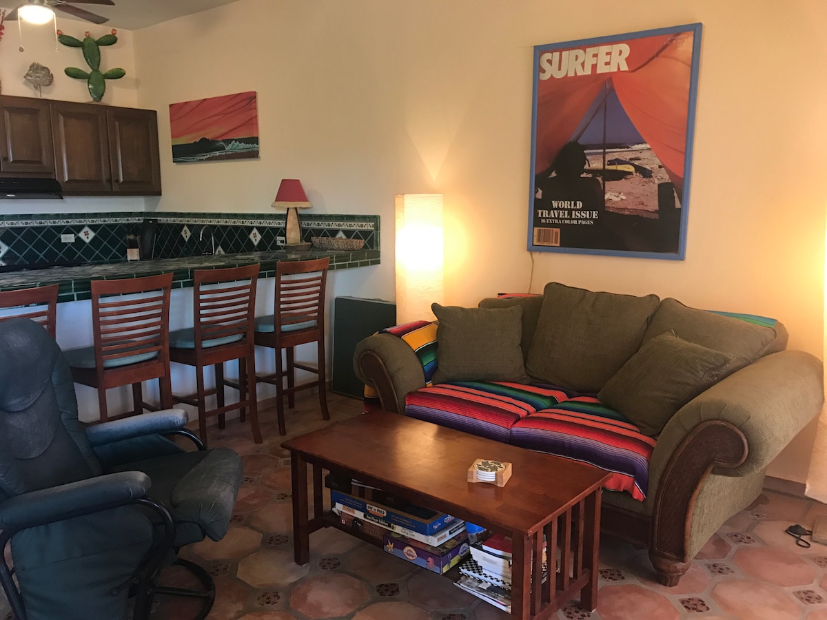 Səhranın dənizlə qovuşduğu və istirahətin təmin edildiyi sakit oazis olan Terrasol Resort-da Casa de Feliz-ə xoş gəlmisiniz. Casa de Feliz böyük bir mərtəbə studiyasıdır. Sakit okeanla üzbəüz ağ qumlu çimərlikdə yerləşən Terrasol hər iki dünyanın ən yaxşılarını təklif edir: Kabonun təklif etdiyi bütün tədbirlərə rahat və rahat çimərlik kurortu hələ də qısa bir gəzinti.