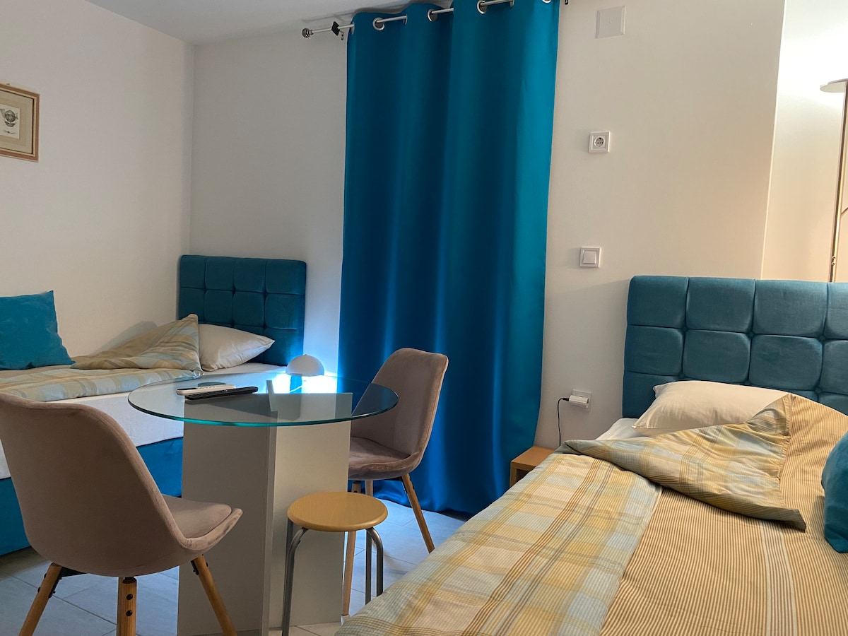 Birinci mərtəbədə, qonaq otağında və 2 yataq otağında müasir tam təchiz olunmuş mənzil. Öz həyətində 2 avtomobil üçün ayrıca parkinq yeri. Əla, lakin hələ də çox sakit bir məhəllədə yerləşən şəhər mərkəzinin mərkəzində çox sərfəli kabinə ilə 20 dəqiqəlik və ya 5 dəqiqəlik məsafədədir (~3 avro haqqı). Tərəfdaşınız və ya ailənizlə gəlirsinizsə və sakit qalmağa yer istəyirsinizsə, şəhəri, yaxınlıqdakı piktoresk dağları və mənzərəli kanyonları kəşf etmək istəyirsinizsə, mükəmməldir.