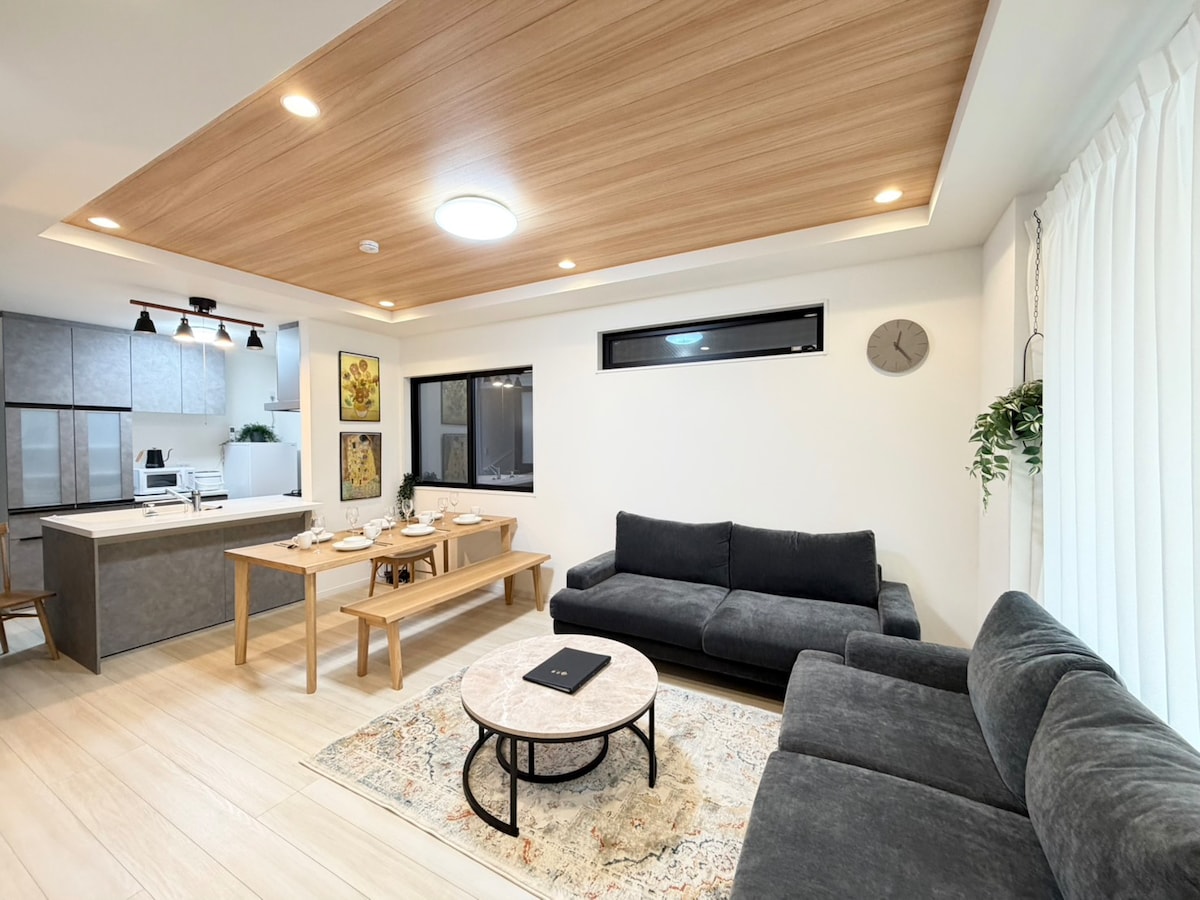 Yeni Yapon üslubunda villa, dəbdəbəli və ucsuz-bucaqsız, 4 yataq otağı, 1 lobbi, 15 nəfəri yerləşdirə bilər, 15 nəfəri yerləşdirə bilər, hava limanı 32 dəq. birbaşa ev, Namba 6 dəq, parkinq sahəsi, stansiya 3 dəqiqəlik məsafədədir