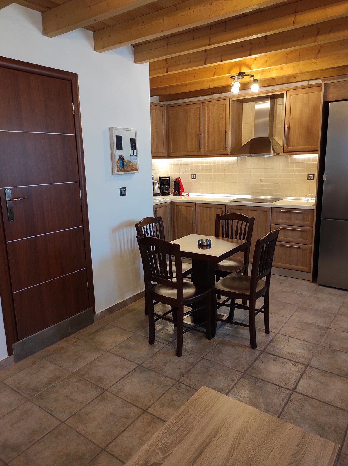 Tam təchiz olunmuş mətbəxi, iki yataq otağı, geniş hamamı, ikinci kiçik tualeti, daxili pilləkəni və dəniz mənzərəsi olan iki özəl eyvanı olan rahat iki mərtəbəli mənzil. Mərkəzdən cəmi 5 dəqiqəlik piyada məsafədə. Məkan tətil zamanı sükunət axtaran cütlüklər və ailələr üçün uyğundur. Eyni zamanda, yerləşdiyi yerə görə fərqlənir, sükunət və rahatlıq təklif edir. Tam qarşınızda iki çətir və şezlonqlar olan özəl çimərlik var. Xoş istirahət