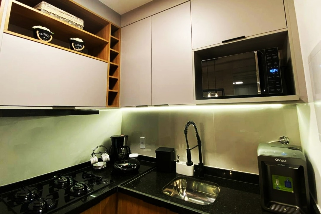Relaxe e curta momentos neste espaço calmo e cheio de estilo. Localizado no condomínio de luxo do Apart Hotel Orizzonte esse loft conta com muito conforto e uma das vistas mais exclusivas e bonitas do Brasil. Apartamento em conceito aberto sala e cozinha, conta ainda com 1 quarto, closet , banheiro e 2 varandas debruçadas sobre um Cartão Postal. Apartamento equipado com 1 cama de casal Queen no quarto e 1 sofá cama de casal na sala . Microondas, geladeira, televisão e ar refrigerado no quarto
