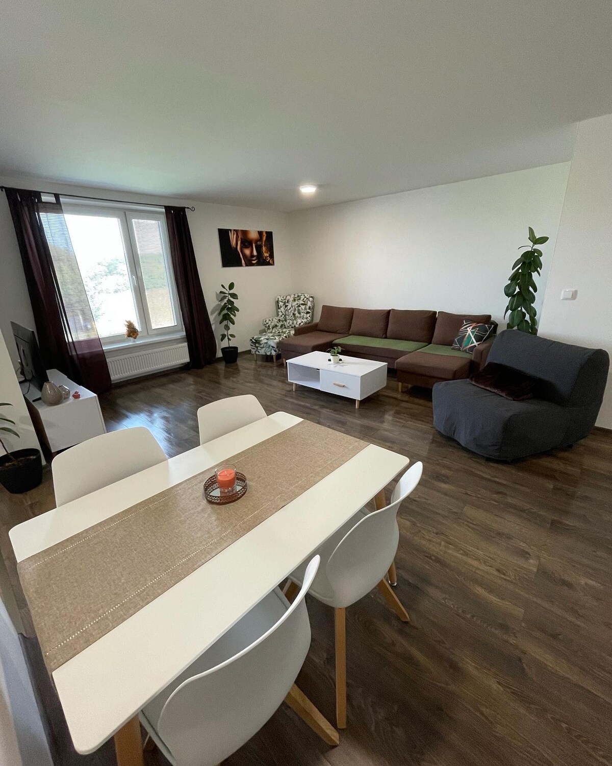 Çaya və Nitra qalasına baxan, örtülü qarajda parkinqi olan lüks və tam təchiz olunmuş mənzil restoran, ərzaq məhsulları, moda mağazaları, elektrikli avtomobil doldurma məntəqəsi olan və tarixi şəhər mərkəzindən cəmi bir neçə dəqiqəlik məsafədə yerləşən PROMENÁDA ticarət mərkəzinin bir hissəsidir. Futbol və qış stadionu 10 dəqiqəlik məsafədədir. Aqrokompleks Sərgi Mərkəzi avtomobillə 5 dəqiqəlik məsafədədir. Açarlar qonaqlama yerinin yaxınlığındakı başqa bir ünvanda götürülməlidir.