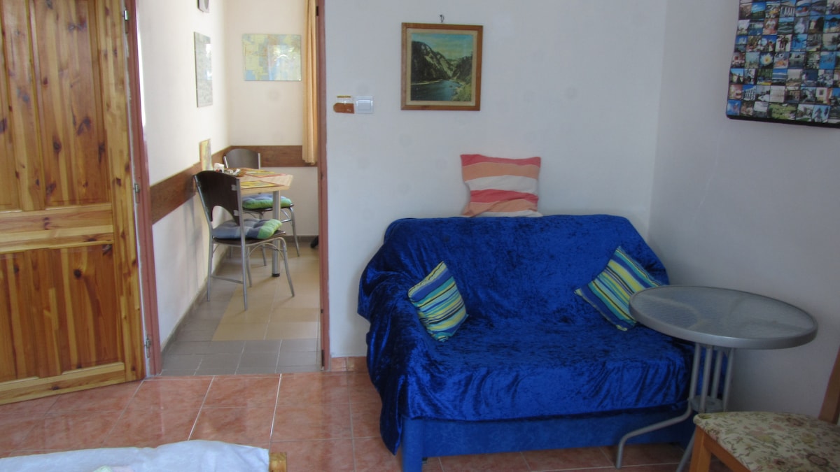 Apartment Rea is located in the very center of the city right on the Courtyard of Europe. Nearby you will find bars, restaurants, cafes,, thermal swimming pool (500m). The Cycle Path and the Komárno Fortress are about 1 km away. Maisonette Apartment consists of a living room with a sofa bed and a kitchen, a large bedroom with a double bed and a terrace on the first floor, one bathroom and another single bed bedroom. The apartment features air conditioning, heating, Wifi, satellite TV and more.