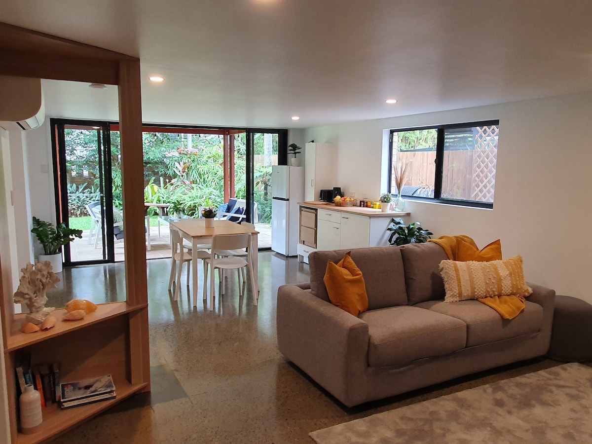 Ayrıca studiya qonaqlamanız əmlakın arxa hissəsində yerləşir və öz xüsusi kilidli girişi var. O, qonaqlamanız üçün ehtiyacınız olan hər şeyin olduğu müasir hamam otağı və kiçik balaca mətbəxi ilə təmir edilir. Kral ölçülü çarpayı bir cütü yerləşdirir və ya əkiz pay üçün bölünə bilər. Çay/qəhvə, dəsmallar və digər kiçik vaciblər daxildir. Əsas yaşayış yeri bərpa edilmiş orijinal 1960-cı ilin çimərlik kottecidir. Xüsusi qapalı əmlak yalnız patlanmış sörfinq çimərlikləri və Nobby Beach mağazaları üçün qısa gəzintidir.