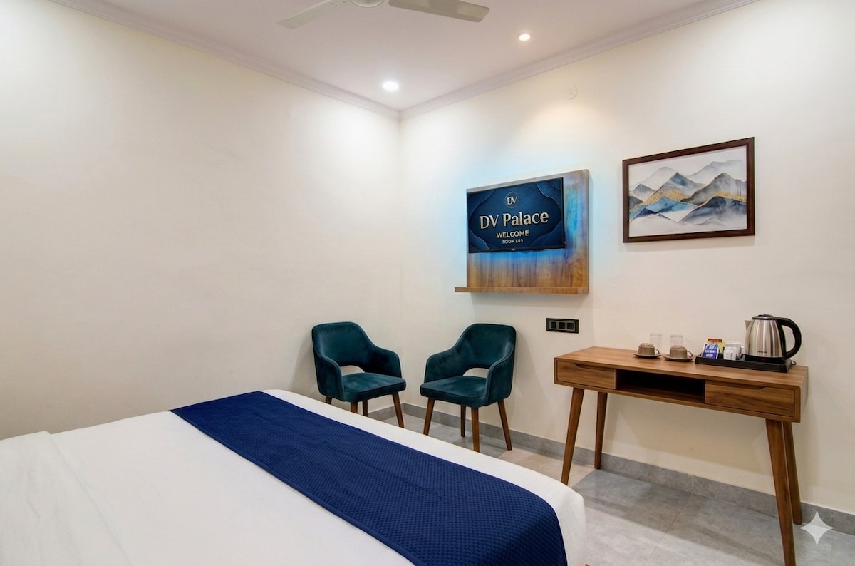 Budh International Circuit yaxınlığındakı Premium Otaq zərif dekorasiya, təmtəraqlı mebellər, müasir imkanlar və heyrətamiz mənzərələr təklif edir, yarış həvəskarları və lüks və rahatlıq axtaran səyahətçilər üçün mükəmməl istirahət yeri təmin edir.
