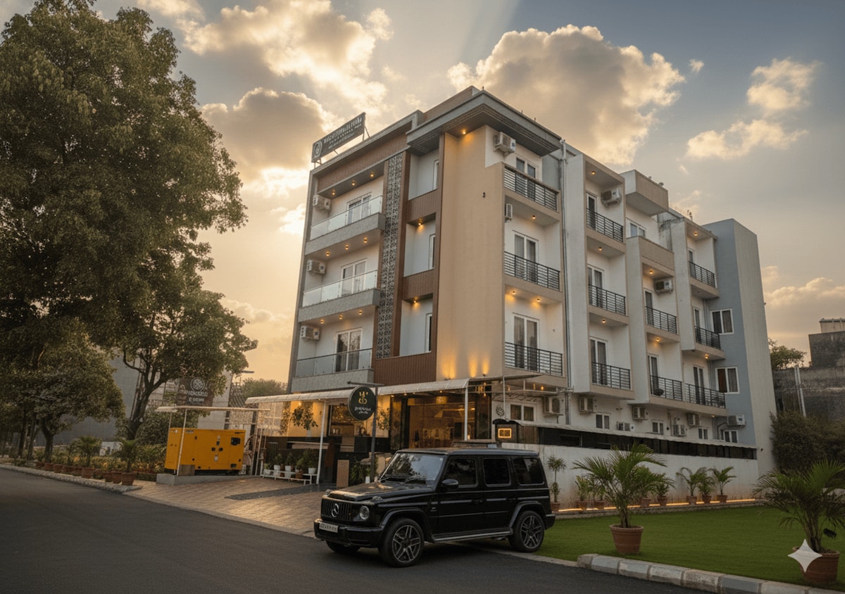 Strategically located in the heart of Gr. Noida, nearby the Expo Mart, Saffron Inn redefines luxury living with its unmatched blend of convenience, comfort and sophistication. It is a boutique Hotel offering Luxury Rooms with all the essential amenities needed for a pleasant stay. This property offers Spacious Rooms, Free Wi-Fi, 24/7 Room Service, Air Conditioning, Safety and Security, free Car Parking and many more amenities. Book now for an unforgettable stay!