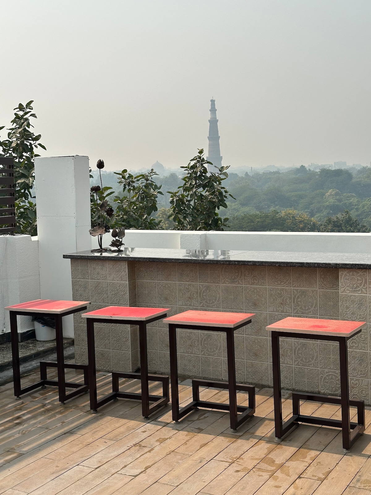 Luxe Duplex with Terrace Bar & Unobstructed Qutub Minar View | Best Stay in Delhi NCR Experience Delhi like never before from this stunning 2BHK duplex featuring a private terrace bar, two bar counters, and panoramic views of the iconic Qutub Minar. With its elegant interiors, modern amenities, and unbeatable location, this home redefines luxury living in the heart of South Delhi. NO LIFT