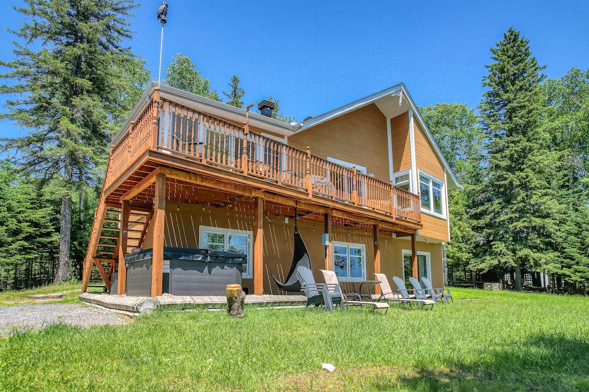 Gəlin və Nominingue gölünün mənzərəsi olan səmimi dağ evindən zövq alın. Göl və meşə arasında inşa edilmiş, Laurentians bölgəsindəki P notit Train du Nordun başlanğıcında Spa ilə bu səmimi cənnət sizə daha uzun müddət qalmağın dadını çıxaracaq. 5000m2-dən çox akrda düşərgə alovundan zövq alın və ya əsrlik ağacların ortasında araşdırın və gözəl gəzinti yollarımızı, velosipedlərimizi, dağ velosipedlərimizi, qar gəzintilərimizi kəşf edin. Ayrıca çimərliyimiz 10 dəqiqəlik məsafədədir, siz və qayıqlarınız sizi qarşılayacaq.