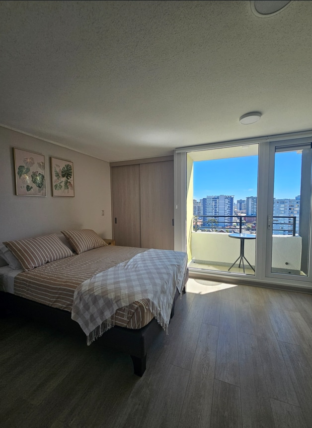 Disfruta de un departamento completo para dos personas, cálido y bien iluminado. Su ubicación privilegiada te permite acceder caminando al Estadio Ester Roa, terminal de buses, universidades, clínicas, hospitales, supermercados, farmacias, parques y otros. El espacio cuenta con todo lo necesario para una estadía cómoda y tranquila, ya sea por trabajo, estudio o descanso. Aquí encontrarás un ambiente acogedor, luminoso y perfectamente conectado con todo lo que ofrece Concepción.