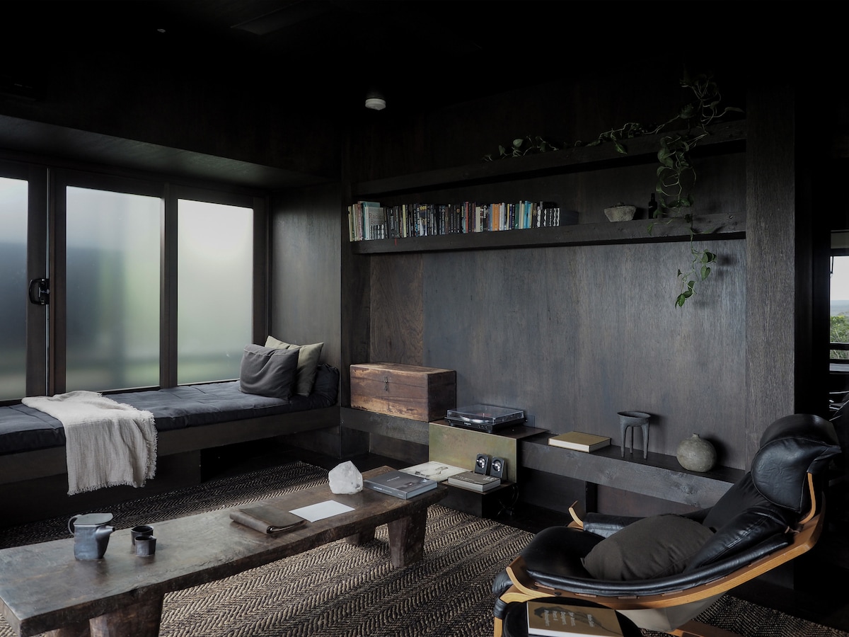 A RETREAT FOR SLOW LIVING Designed by Frank Macchia to challenge, nurture and inspire, this home offers a very unique get away experience. From the large raw timber gates, the external connecting deck and the open air shower with mountain views, this private sanctuary encourages calm, healthy, connected living. The beautiful spaces in this home are perfect for a romantic getaway for honeymooners, babymooners, couples & singles.