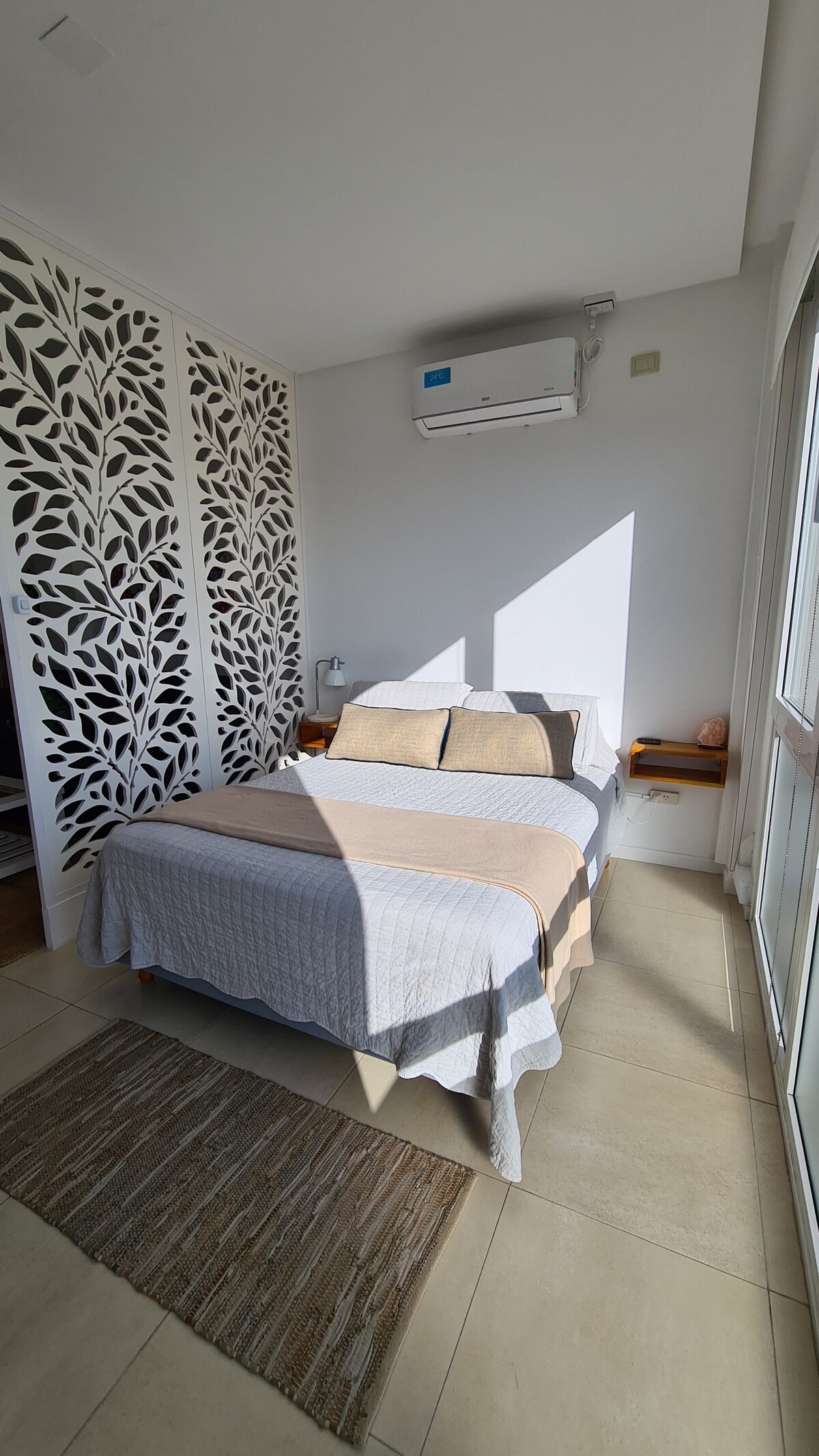 El departamento tiene dos ambientes con cochera descubierta en el edificio. Es acogedor y tranquilo, con grandes ventanales que llenan de luz y verde. En el living hay un smart tv de 42’ y conexión wifi. La cocina está bien equipada. El dormitorio es amplio, con cama doble y placard en el pasillo, el baño tiene bañera. El balcón arreglado con plantas y una pequeña mesa con sillas invitan a relajarse tomando un bebida. Sábanas y toallas. La Pileta tiene deck con reposeras , es de uso común.