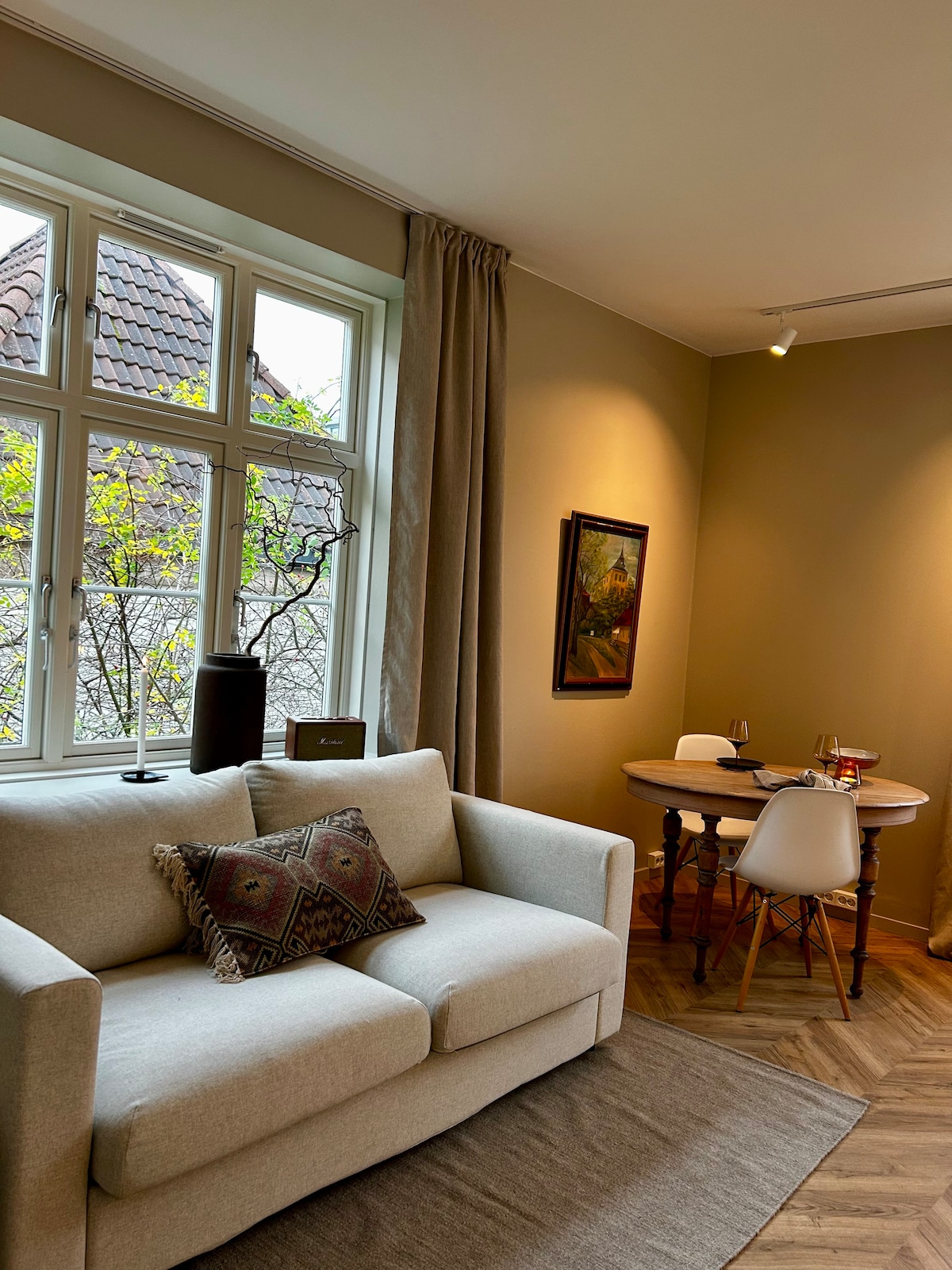 Açıq qonaq otağı/mətbəxi olan, 1-ci mərtəbədə üç nəfər üçün uyğun olan yeni təmir🏠 edilmiş künc mənzil Avtobus, tramvay və metroya🚌 qısa məsafə 🛌 Yataq dəsti, dəsmallar, qəhvə və təmizlik daxildir Tətbiq/açar çipi ilə uyğunlaşan giriş və çıxış Mənzildən kənarda🚘 parkinq yeri, burada EasyPark tətbiqi/bilet satış maşını vasitəsilə qısa müddətli parkinq üçün ödəniş edə və ya Aimo Park veb-saytı vasitəsilə uzunmüddətli parkinq bron edə bilərsiniz (məsələn, yalnız NOK 400 üçün 7 gün)