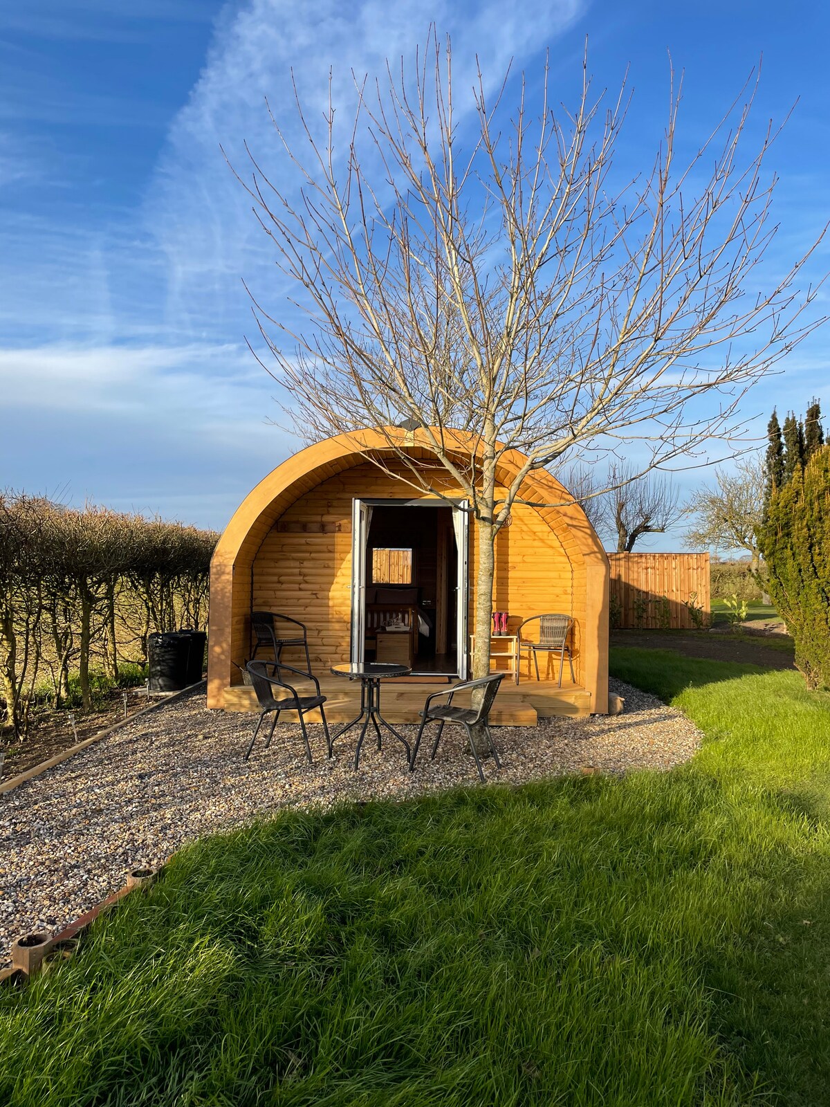Təbiətdəki bu romantik məkanın gözəl şəraitindən zövq alın və dəbdəbəli kral böyüklüyündə çarpayıda oyanın. Fransız qapılarını açın və Banham Moor-a baxın. Podda divan çarpayısında yatan 2 böyük və 2 azyaşlı uşaq yerləşə bilər. Pod geniş duş otağı və mətbəx ilə özünü ehtiva edir. Yemək üçün qapalı və açıq masa və stullar var və ya sadəcə çöldə oturub əsərdən zövq almaq, eləcə də sakit və mənzərəyə heyran olmaq istəyirsinizsə.
