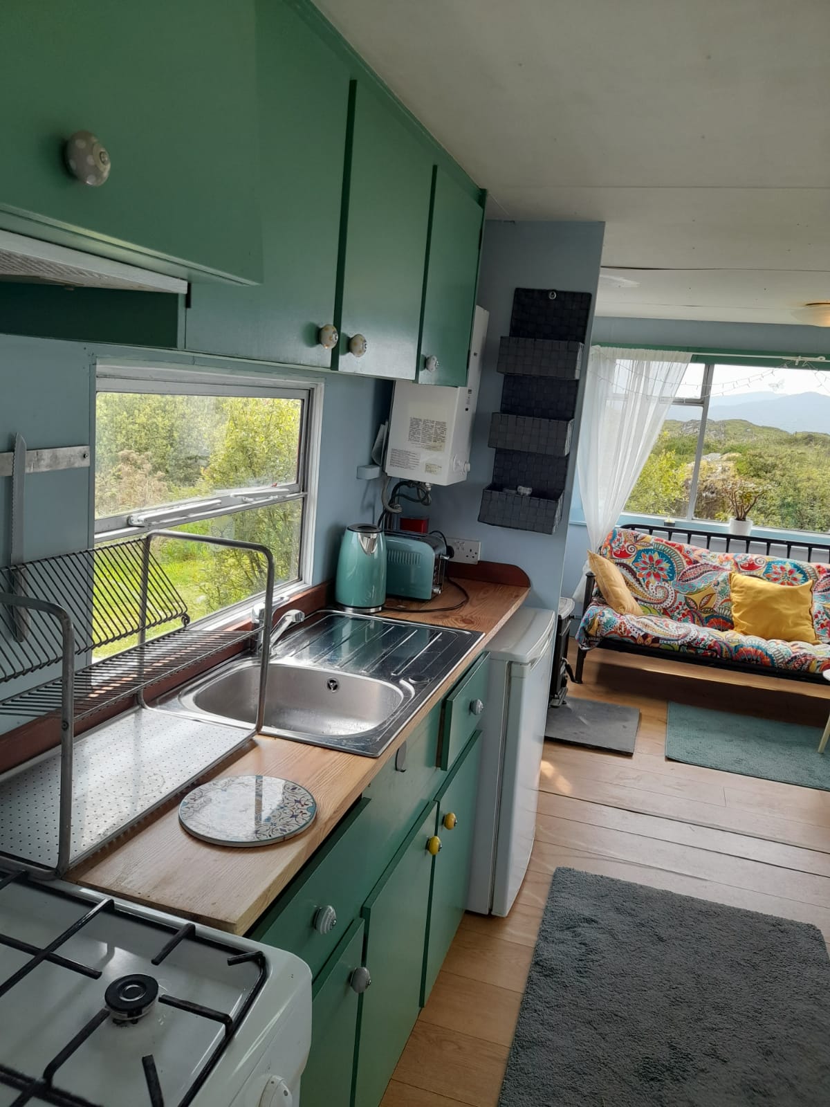 Yüksək bir ərazidə xüsusi fermada yerləşən yulaf qutusu bir az dünyadan qaçmaq üçün dəbdəbəli bir sülh və əmin-amanlıq təmin edir. 1968 Bedford TK Horse Lorry rahat, qonaqpərvər bir yer yaratmaq üçün təkrar emal edilmiş materiallardan istifadə edərək 2 böyük üçün qonaq yaşayış yerinə çevrilmişdir. Bu, bir çox turistik yerləri ilə İrlandiyanın panoramik Şimal Sahilini araşdırmaq üçün mükəmməl bir bazadır. Yaxınlıqda böyük restoranlar və keyfiyyətli qəhvə mağazaları var.