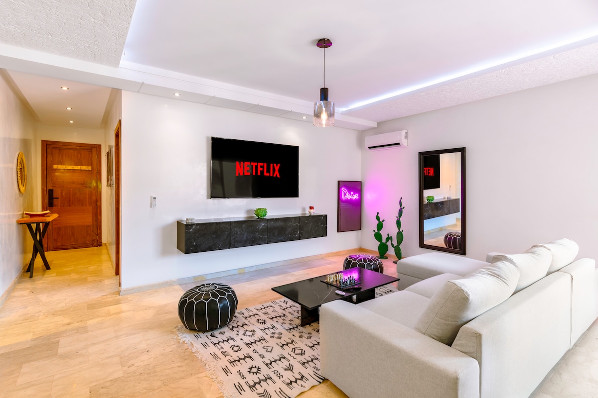 2 yataq otağı, 2 hamam otağı olan mənzilimizdə Marakeşin mərkəzində qonaqlayın. Yüksək səviyyəli Simmons yataq dəsti, yüksək sürətli Wi-Fi (fiber optik) və etnik çalarlı müasir dekorasiyadan zövq alın. Tam təchiz olunmuş mətbəx, dəbli vanna və italyan duşu. Cemaa el-Fna meydanı, Plazza və Kerré Edendən qısa məsafədə. NB: Nikahdankənar Mərakeş cütlüklərinə icazə verilmir.